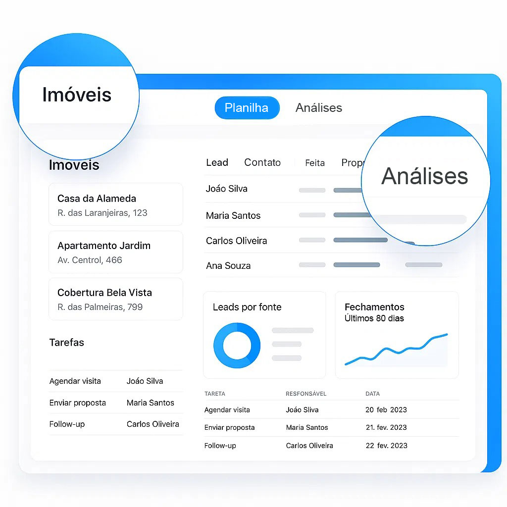 Monitore desempenho, ROI e produtividade dos corretores em tempo real.
